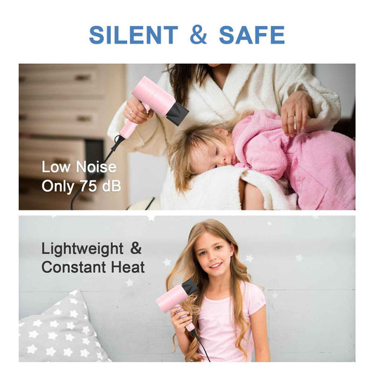 slopehill Professional Ionic Hair Dryer, Powerful 1800W Fast Drying Low Noise Blow Dryer with 2 Concentrator Nozzle 1 Diffuser Attachments for Home Salon Travel (Pink)