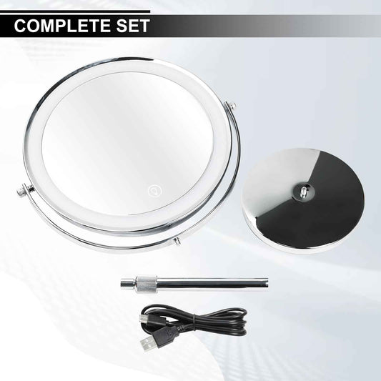 DANOPLUS Makeup Mirror with Lights, 9" Large Magnifying Mirror with 1X/10X, 360°Rotation Vanity Mirror, 3 Color Brightness Adjustable Light Up 5000mAh Rechargeable, Double-Sided, Gift for Women