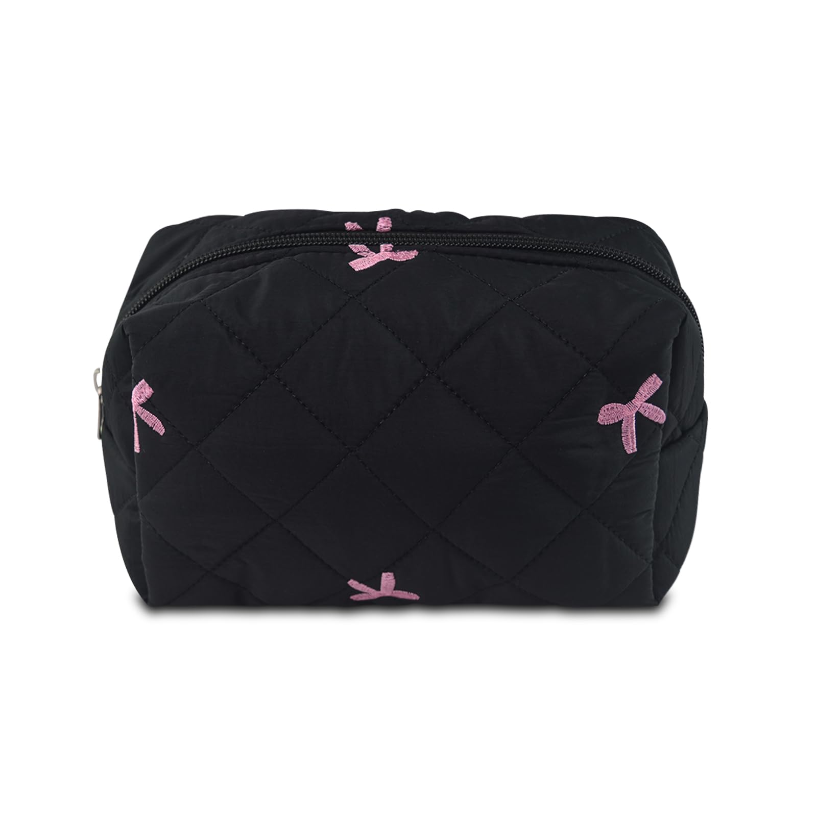 AMZMA Quilted Makeup Pouch,Cotton Puffy Makeup Bag, Coquette Cosmetic Bag for Women and Girls, Aesthetic Organizer Bag, Cute Flower Travel Toiletry Bag