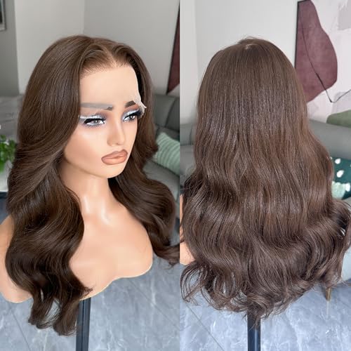 BLL Chocolate Brown Lace Front Wig, Synthetic 13x6 HD Lace Front Wigs Body Wave Glueless Brown Pre-Plucked Natural Density Free Part Lace Front Wig