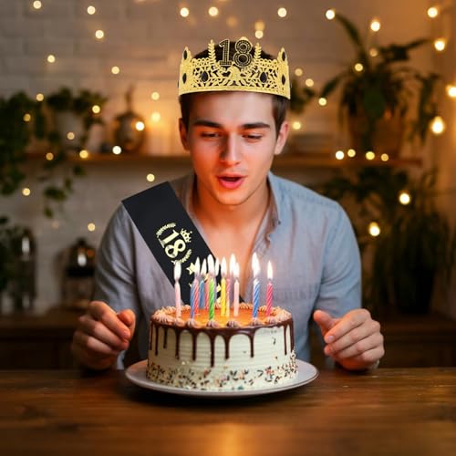 CIEHER Birthday King Crown & Birthday King Sash for Men Boys (18th Birthday)