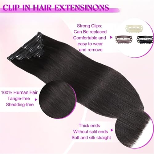 Clip In Hair Extensions Real Human Hair, Remy Human Hair Extensions 8PCS Long Soft Natural Hair piece 14-28 Inch Straight Hair Extension for Women(80g-120g 1B# Natural Black)