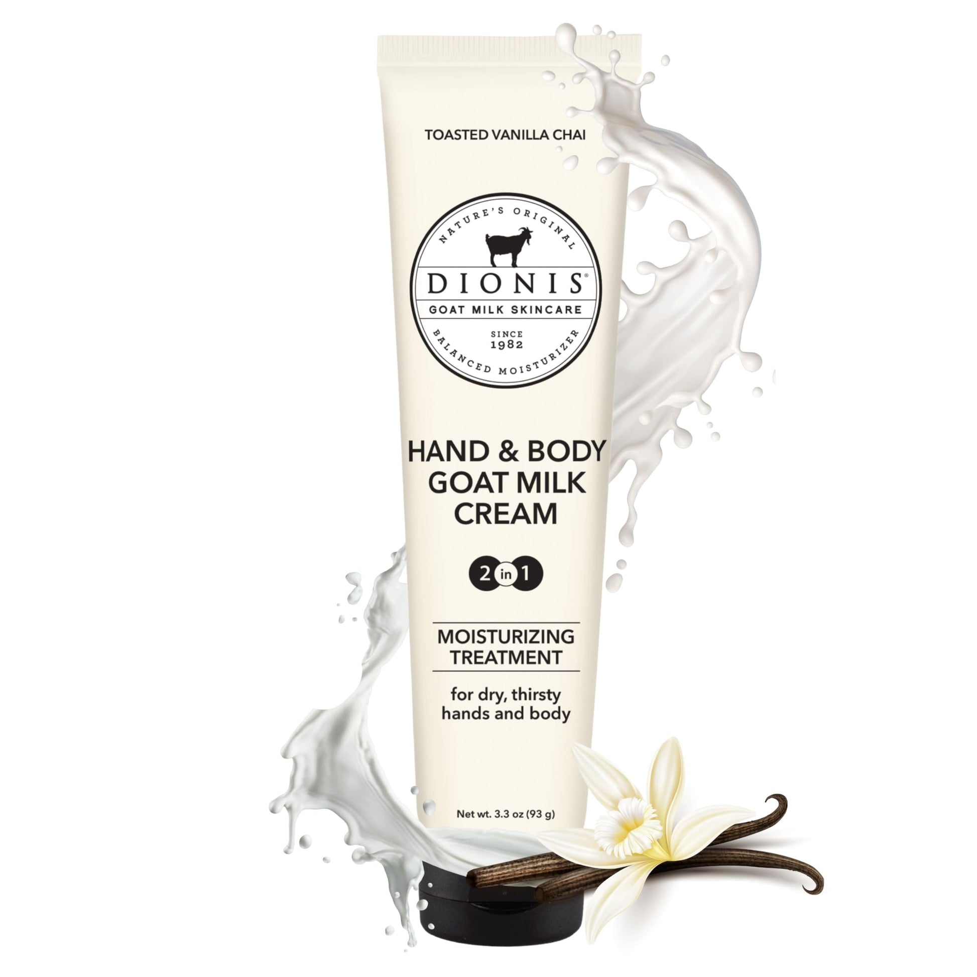 Dionis Goat Milk Skincare Bundle - Vanilla Chai Hand & Body Cream (3.3 oz Travel Size) & Body Lotion (8.5 oz Full Size), Moisturizing Set for Dry and Sensitive Skin, Cruelty-Free and Paraben-Free