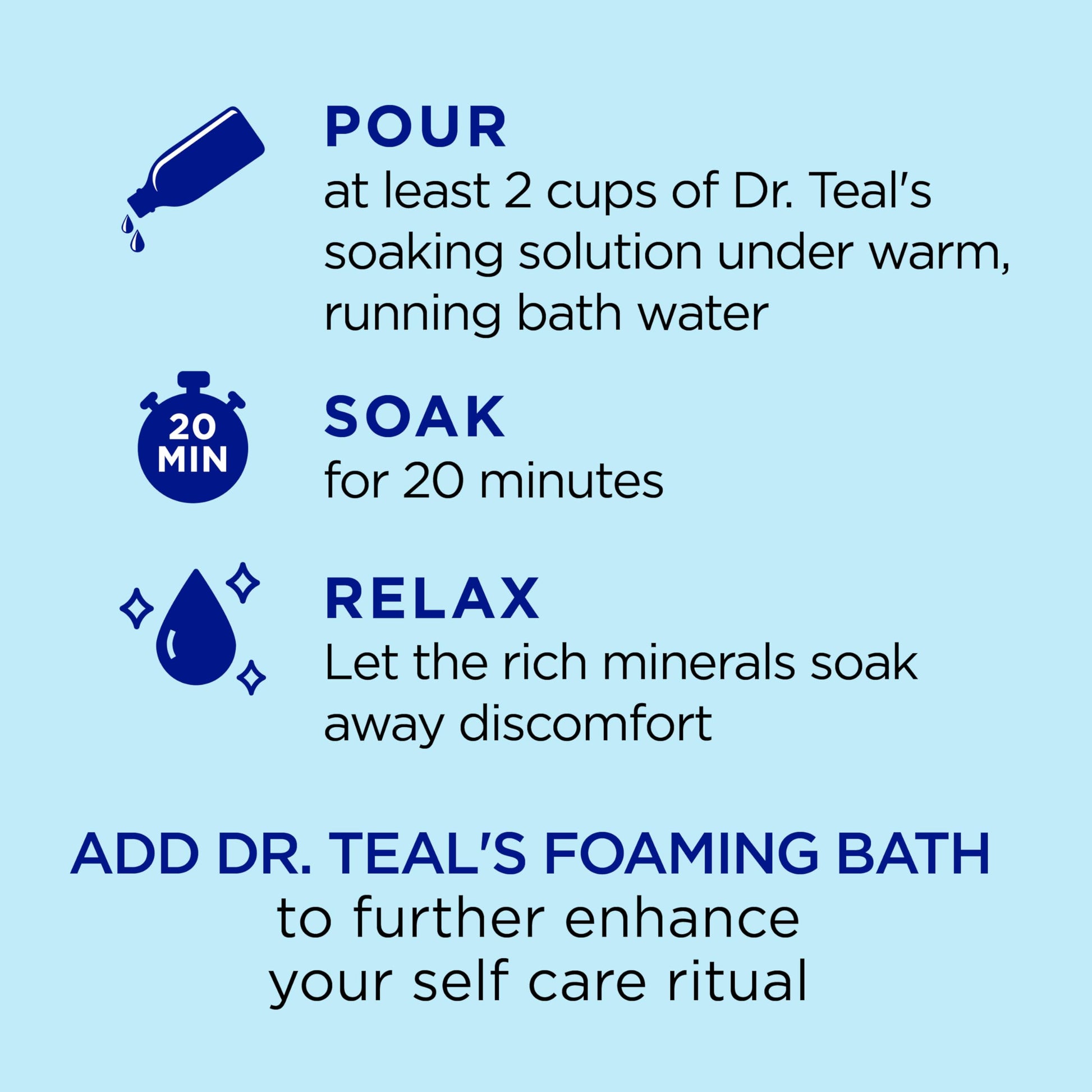 Details: Dr Teal’s Restorative Minerals Soak is inspired by the power of natural hot springs & geothermal nutrients with a beneficial blend of Magnesium, Potassium, Zinc, and Essential Oils. Featuring our signature Pure Epsom Salt (Magnesium Sulfate), this soak is perfect for relieving aches and soreness from muscle pain after a long day. Magnesium, potassium and zinc will help keep your skin revitalized and healthy, and the essential oil blend will help rejuvenate both your mind and body. Unwind from your day and experience a relaxing bath like no other so you can feel your best tomorrow. To elevate your experience, pair with Dr Teal’s Restorative Minerals Foaming Bath. Dr Teal's Pure Epsom Salt Soak, Restorative Minerals with Magnesium, Potassium & Zinc is paraben-free, phthalate-free, cruelty-free, and vegan.