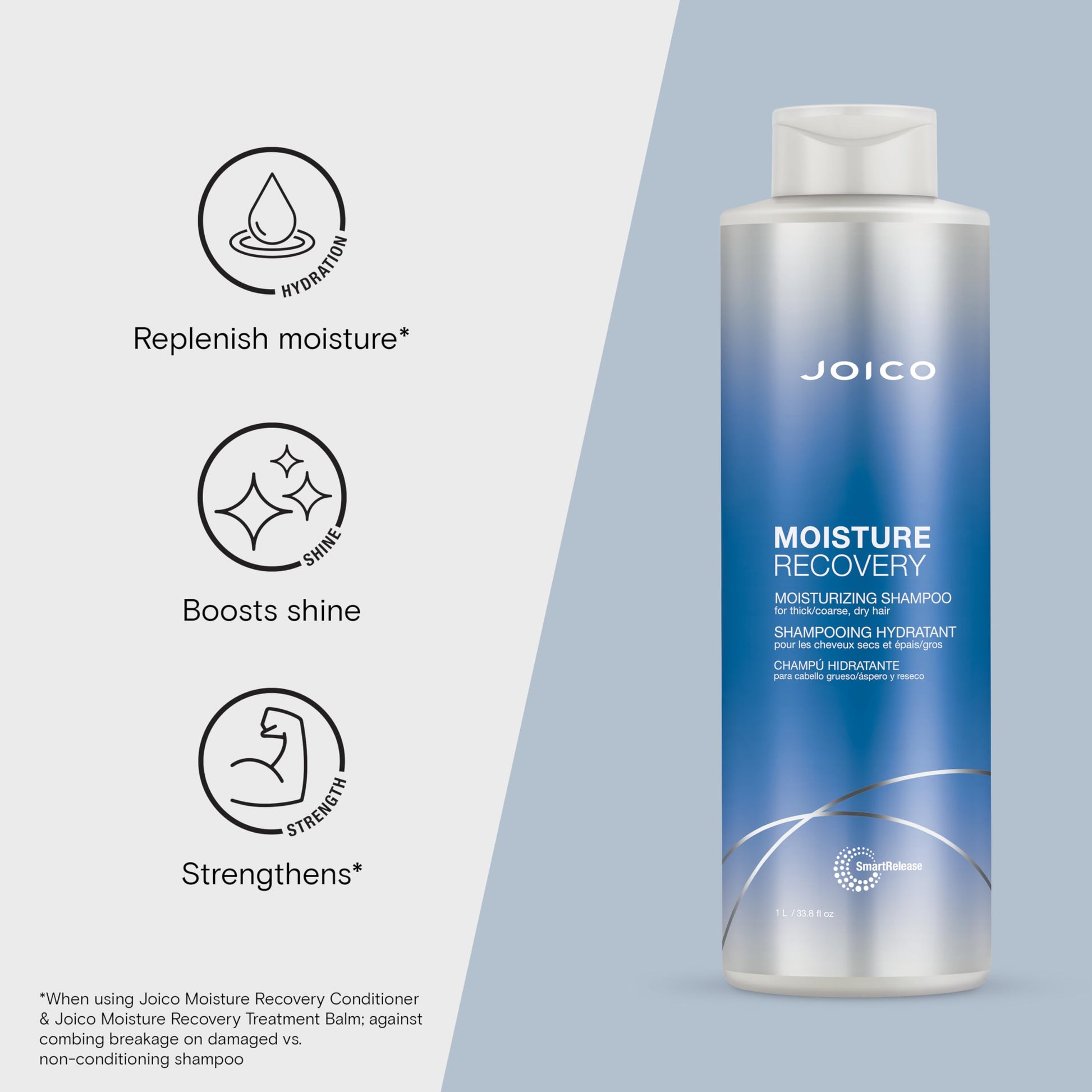 - Joico Moisture Recovery Shampoo is a gentle cleanser that helps replenish lost moisture, restore smoothness and elasticity to dry hair. It doesn't strip the hair of vital moisture, and when used with Joico Moisture Recovery Treatment Balm, it provides 24-hour moisture replenishment.