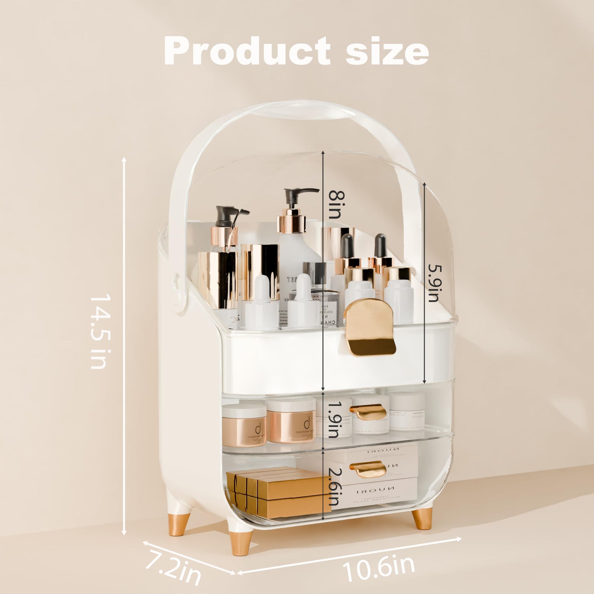 Makeup Organizer Countertop With Lid And Drawers Large Skin Care Cosmetic Display Case Holder for Vanity Desk Bathroom Storage Box,White