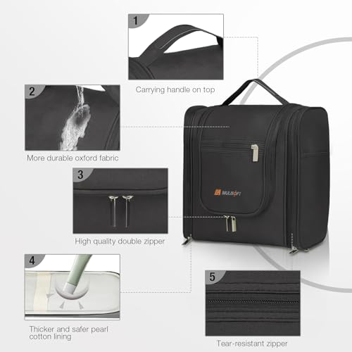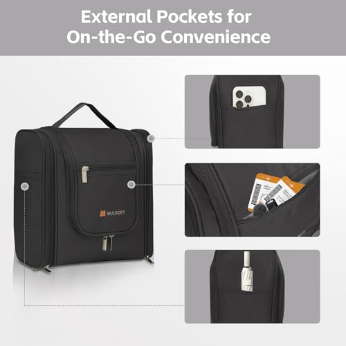 MULISOFT Travel Toiletry Bag for Women & Man, Extra Large Toiletry Bag, Portable Hanging Toiletries Bag, Water Resistant Dopp Kit for Toiletries, Cosmetics, Big Comparment Travel Makeup Bag, Black