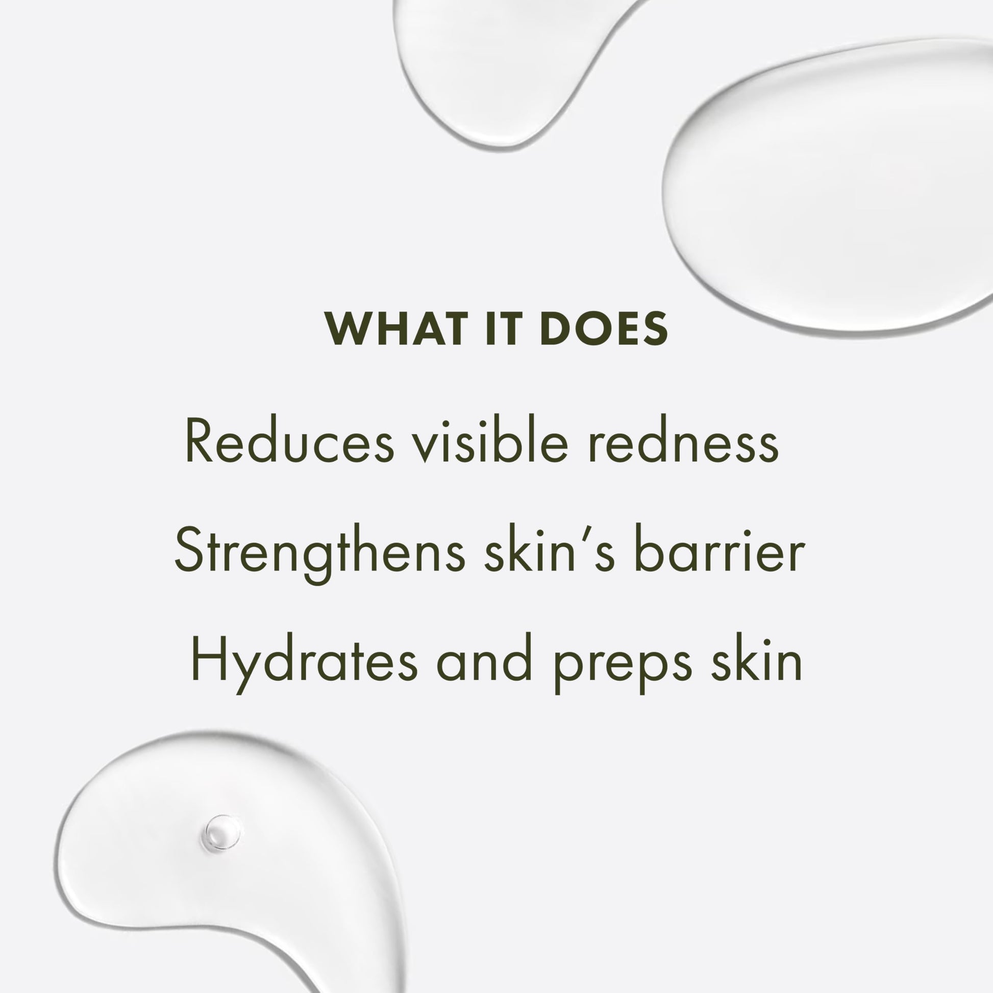 - WHAT IT DOES: Hydrates; reduces visible skin redness; helps repair and protect by strengthening skin's barrier; visibly minimizes pores; and preps skin for serum and moisturizer.