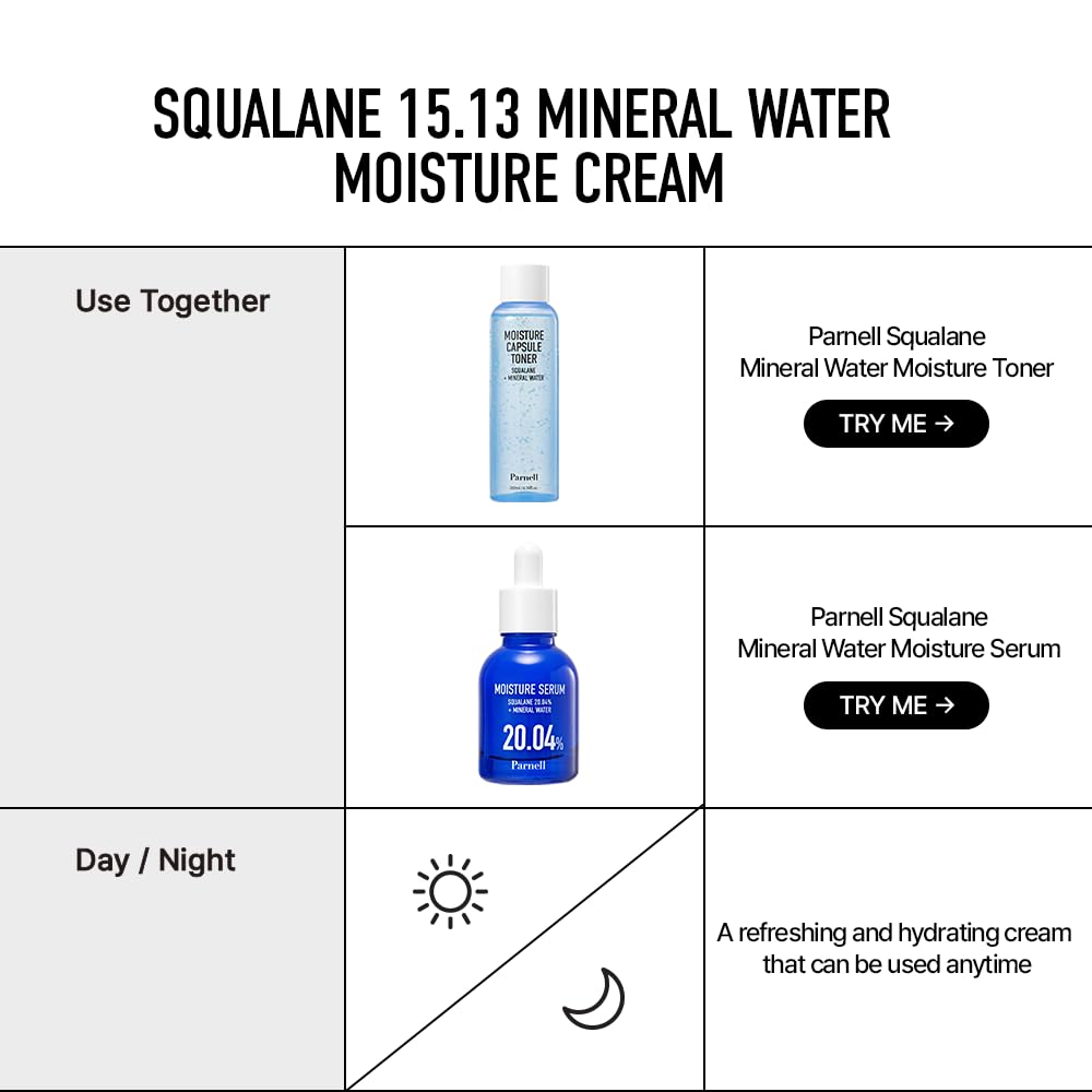 Parnell Squalane 15.13 Mineral Water Moisture Cream, K-Beauty Deep Hydrating Face Moisturizer for Dry, Sensitive Skin (1.69 fl. oz / 50ml)