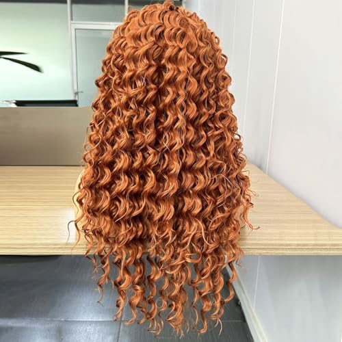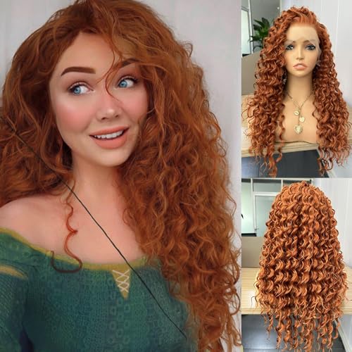 RONGDUOYI Ginger Long Curly Lace Wig Synthetic Frontal Lace Wigs with Free Part Heat Friendly Synthetic Lace Front Wigs for Women Princess Merida Cosplay Wig 26Inch