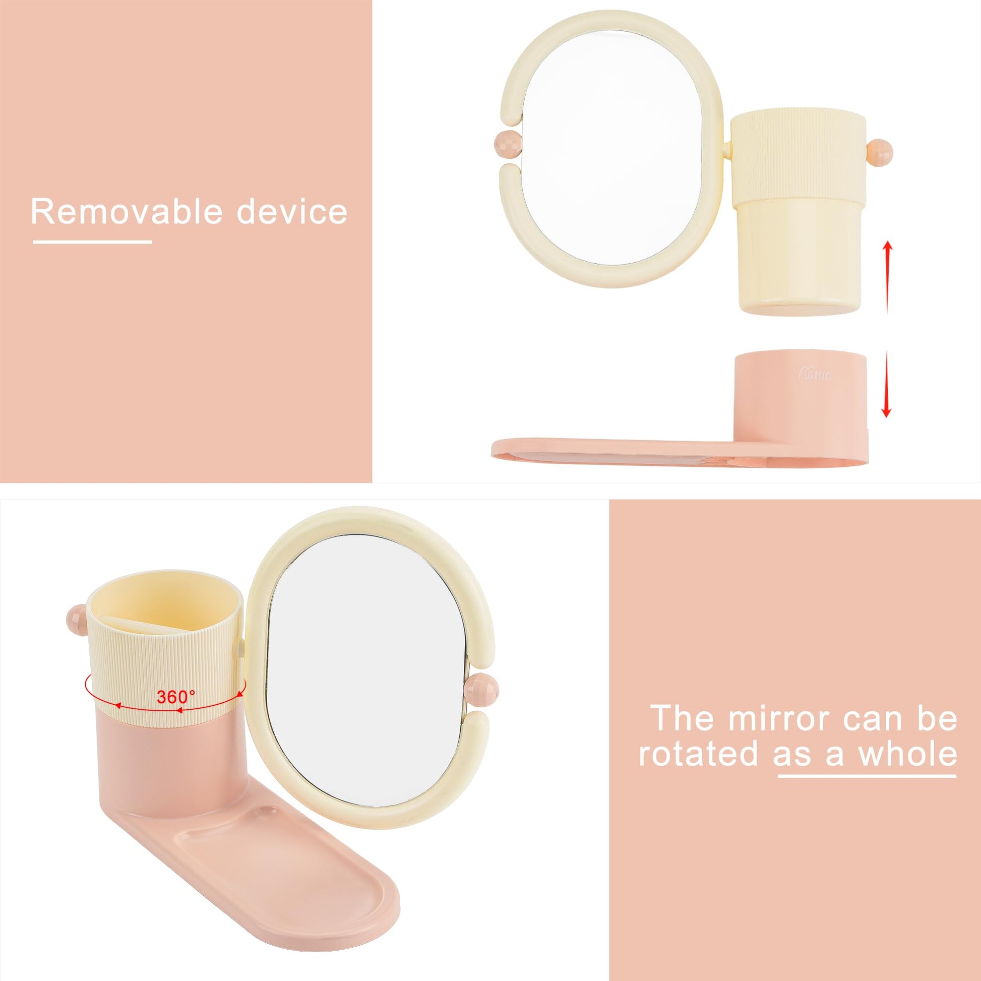 - Dual-Sided Mirror Design – Features a 360° rotatable glass mirror with a HD front side for daily makeup touch-ups and a magnifying back side for grooming, ideal for makeup brushes.