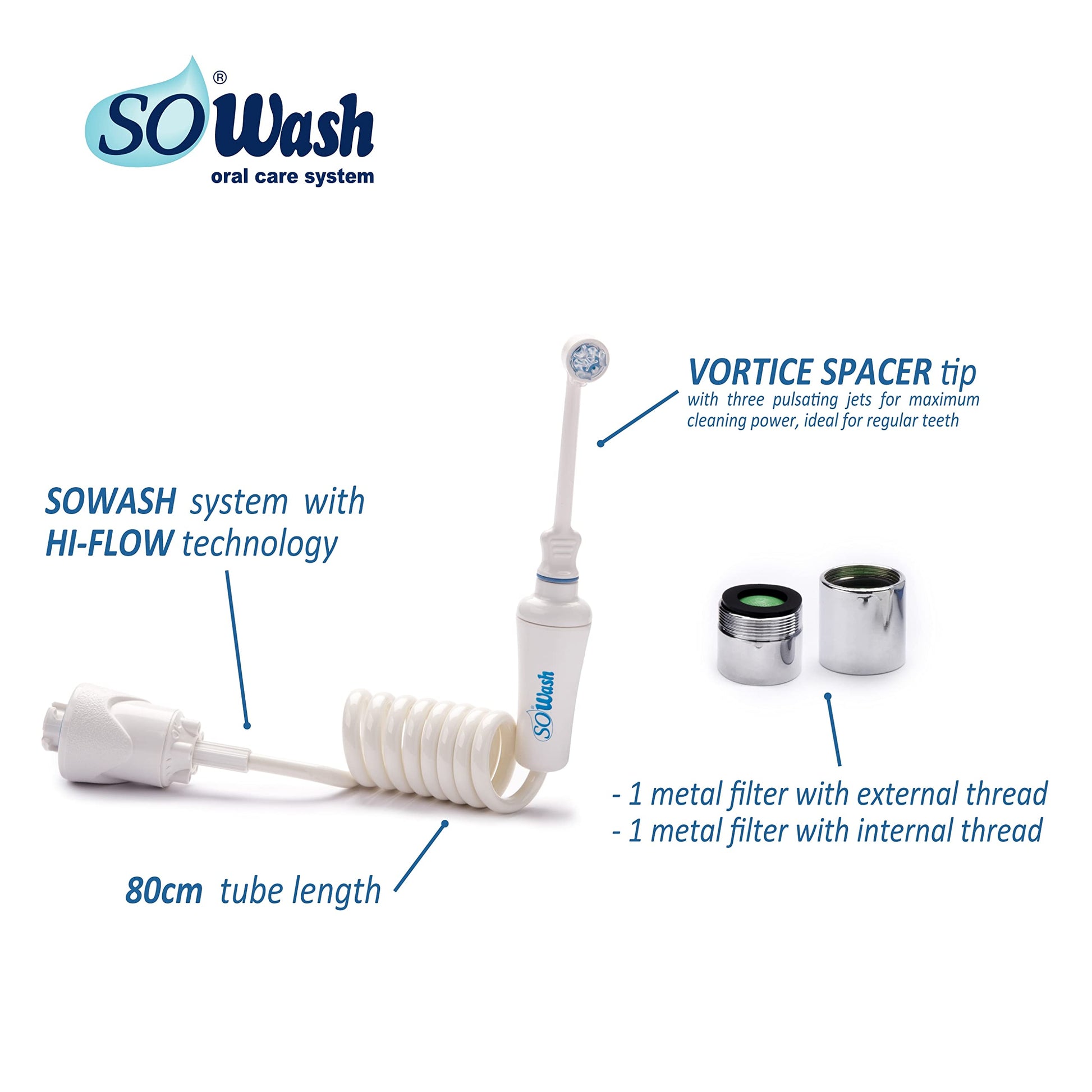 Water Flosser SOWASH VORTICE, Faucet Oral Irrigator Dental Water Floss, It Connects Directly to The Faucet, Non-Electric Dental Irrigator, with Vortice Tip (Int. Pat.), Italian Product