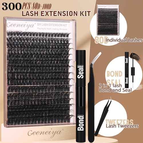 Geeneiya Volume Lash Clusters Kit DIY Lash Extension Kit D Eyelash Extensions with Lash Bond and Seal Tweezers,10-14mm Eye Corner Eyelashes and 16-18MM Cluster Lashes 300Pcs
