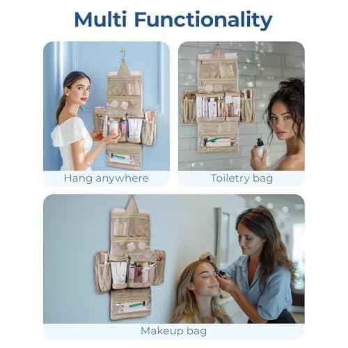 BAGSMART Travel Toiletry Bag, Extra Large Full-open Hanging Toiletry Bag for Women, Puffy Cosmetic Makeup Bag Organizer with Handle for Accessories, Essentials, Toiletries (Brown)