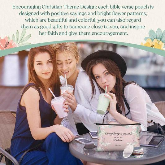 Dansydaisy 60 Pcs Christian Gifts for Women Religious Gifts Include 20 Canvas Makeup Bags 20 Bible Verse Mini Mirror 20 Inspirational Bible Keychains Church Favors for Women Mother Sister(Classic)