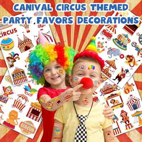 50 PCS Carnival Circus Temporary Tattoos for Kids, Circus Themed Tattoos for Birthday Party Supplies Funny Clown Tattoo Stickers for Kids Boys Girls Party Bag Filler