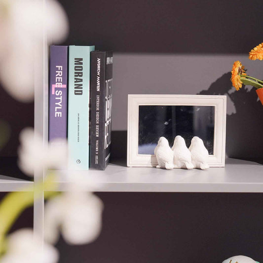 Cynkeyee Bird Decor Table Decoration - Console Table Centerpieces Decorative Square Shaped Makeup Mirror Small Tabletop Mirror for Farmhouse Vintage Vanity Mantel Shelf Bedroom 8.25x2.25x6 Inch