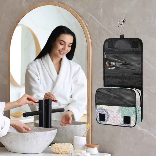 Funky Qiu Hanging Toiletry Bag for Women And Men,Mandala Flower Travel Cosmetic Makeup Bag Travel Organizer,Ethnic Waterproof Travel Bag for Toiletries Accessories,Travel Essentials