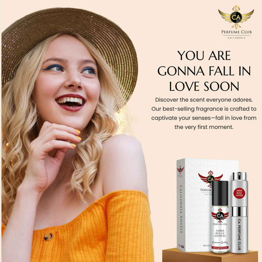 CA Perfume Duo Impression of Amber Rouge Saffron For Women and Men Fragrance Layering Set Bundle – Eau De Parfum + Body Oil Roll-On Bottle (Set of 2, 0.27 Fl Oz + 0.33 Fl Oz)