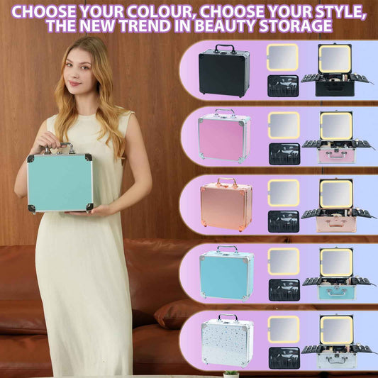 Unicorn Slumber Makeup Organizer Box with Detachable Lighted Mirror, Travel Train Cosmetic Case, Adjustable Divider Storage Bag, Portable Artist Storage Suitcase with Magnetic LED Mirror - Mint
