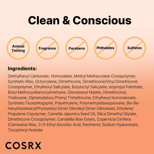 COSRX Airy-Light Clear Sunscreen Stick with Vitamin E & C SPF 50, 0.67 oz, 19g, Lightweight, Travel Essentials, Summer Essentials, Korean Skin Care, Korean Matte Sunscreen for Face, Stocking Stuffers