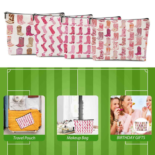 4pcs Pink Cowboy Boots Makeup Bag Hot Pink Cowgirls Cosmetic Bags Cowboy Boots for Women Makeup Bag, Cowgirls Gifts for Women Friends Sisters Birthday Gift, Toiletry Zipper Pouch