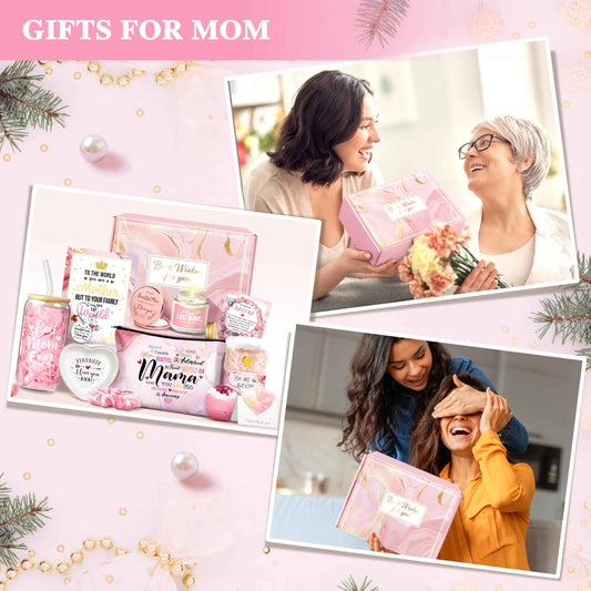 Jumway Gifts for Mom Gifts Basket, Mother's Day Gifts for Mom Birthday Gifts Set Include Glass Cup, Scented Wax Candle, Bath Bomb Scented Soap Make-up Bag