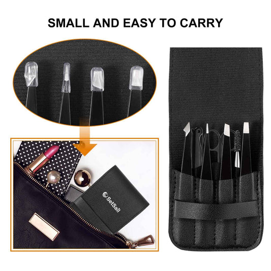 SetSail 4-Piece Tweezers Set, Eyebrow Tweezers Black Stainless Steel Slant, Slanted Pointed, Round Pointed & Flat Tip Tweezers for Precision Grooming for Women & Men