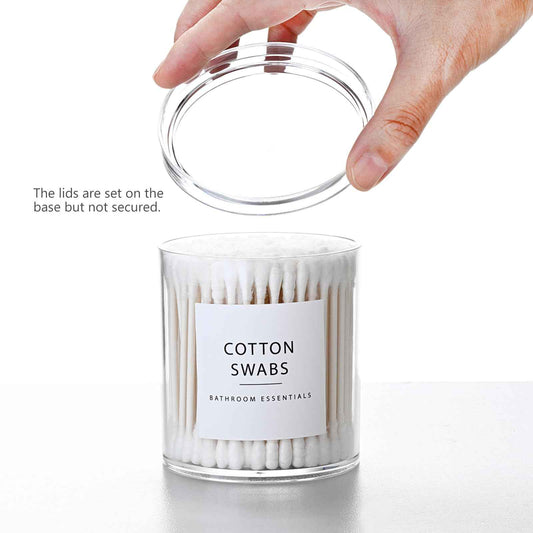 SheeChung Qtip Holder Dispenser Stackable Clear Plastic Container with Storage Lid Bathroom Essentials Decor, Vanity Makeup Storage Organizer for Cotton Swabs, Cotton Balls (4pack 20oz)