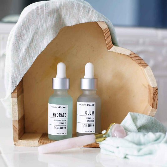 Valjean Labs Facial Serum, Combo Pack of Hydrate, Glow, and Firm | Supercharged, Targeted Skincare Ingredients | Paraben Free, Cruelty Free, Made in USA (1oz Bottles)
