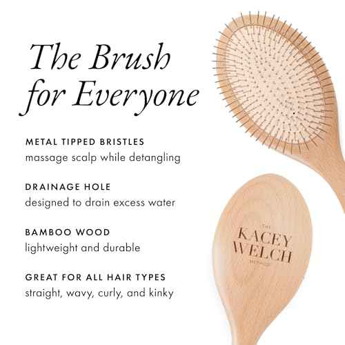Kacey Welch Hair Brush for Everyone ? Metal-Tipped Bristles for Gentle Detangling with Scalp-Stimulating Comfort, Natural Bamboo Brush for Extensions, All Hair Types, Wet & Dry Styling