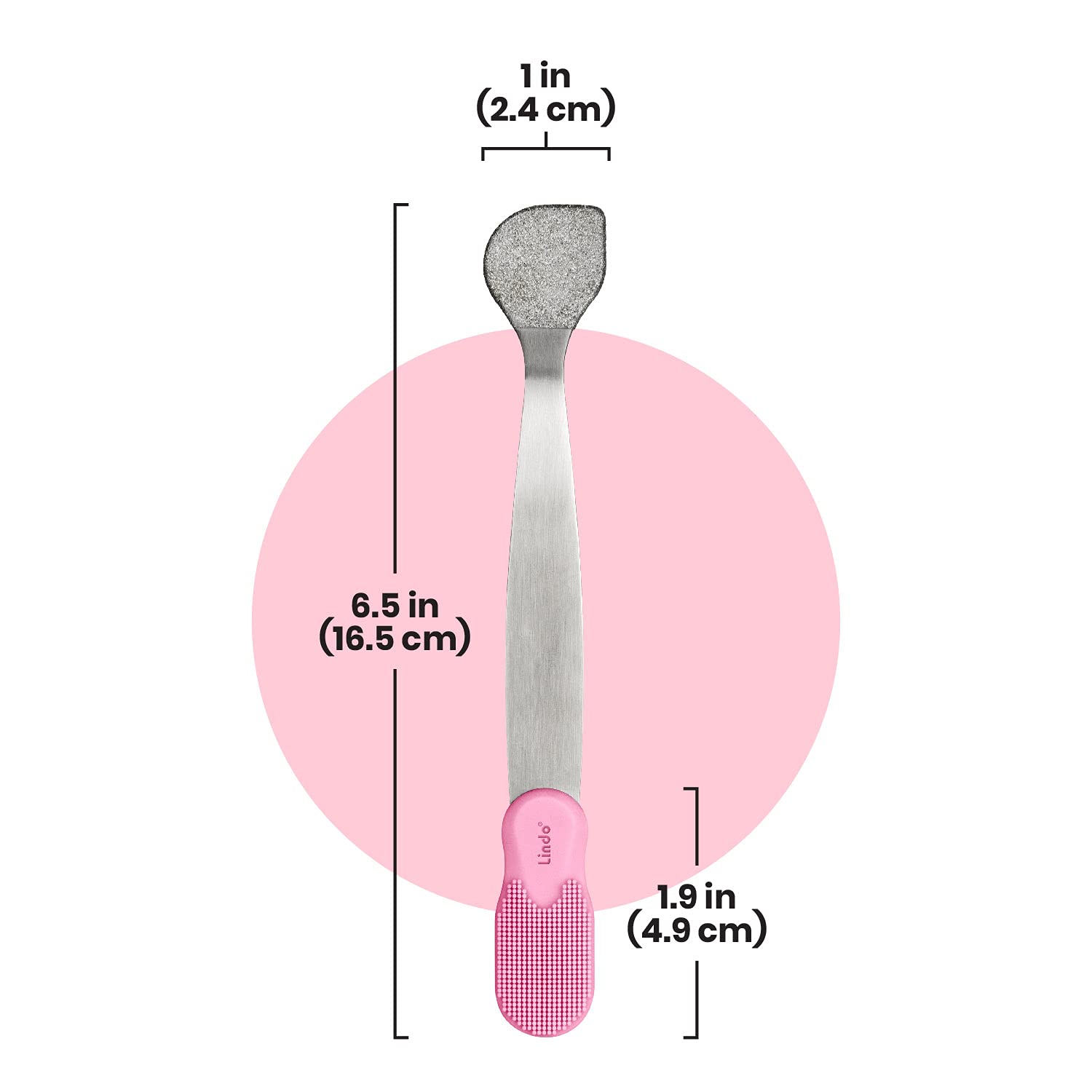 Details: The Lindo Beauty Buffer is a diamond infused exfoliation tool that helps promote radiant and smooth skin. Easily tackle problems such as wrinkles, dry patches, and acne scars. Simply wet your face, then using very gentle and slight pressure, glide the head of the buffer across the skin in back-and-forth and circular motions. The pointed corner helps with hard-to-reach areas such as the nose crease. The opposite side of the tool also features an embedded silicone lip scrubber to promote gentle exfoliation and additional deep cleansing.