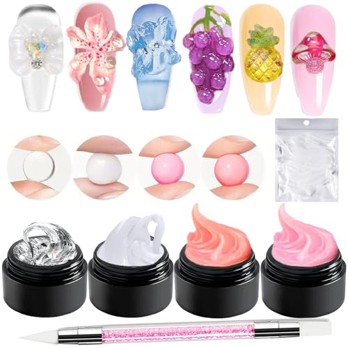 NAILGIL Solid Builder Gel For Nails 4 Colors, White Clear Nude Pink 3D Flower Nail Art Sculpture Extension Gel Non-Sticky Hand Sock Off UV LED Salon DIY at Home-60g/2.1oz