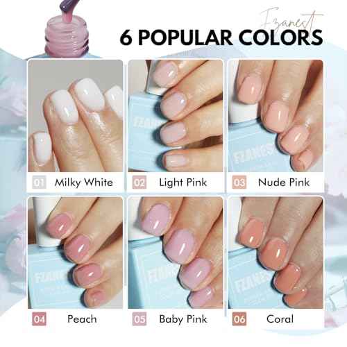 FZANEST Hema-Free Rubber Base Builder Gel Set, 6 Colors Nude Pink Gel Polish Sheer Milky White Natural Nail Polish French Tips Base Colors Nails Strengthener Soak Off Gift for Womens
