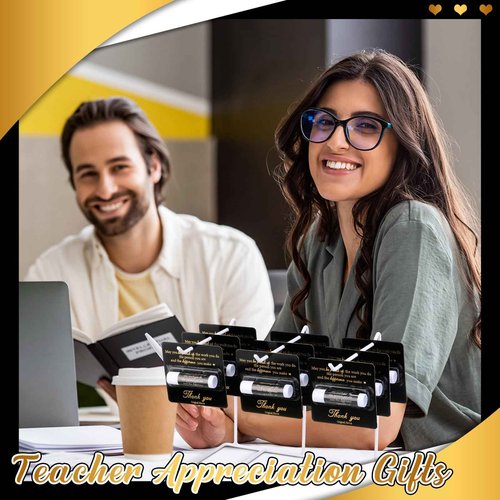 Sacubee 30 Pack Christmas Employee Appreciation Gift Lip Balms Bulk Staff Teacher Team Volunteer Thank You Gift Thanksgiving Christmas Appreciation Party Favor for Women Men(Cool,Black Gold)