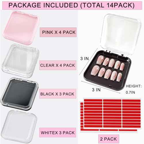 14 Pcs Press On Nail Packaging Box Press on Nail Storage Box for Press Ons with 60 Pcs Adhesive Double Sided Tape for Fake Nail Storage Case Nail Display Nail Salon Supplies Nail Art Nail Business