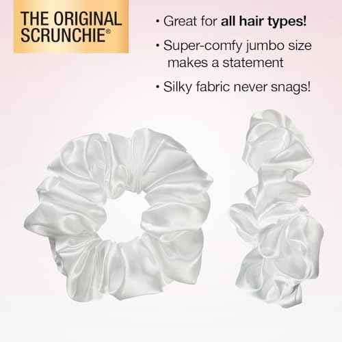 Scunci by Conair The Original Scrunchie hair accessories - hair accessories for women - hair ties - trendy hair accessories - Jumbo Size in Washable White Nylon Silk- 1 Count