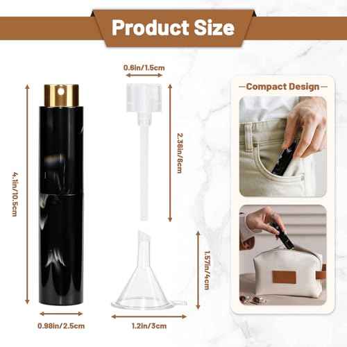 Vitog 10ML Marble Texture Refillable Travel Perfume Atomizer, Empty Cologne Dispenser Mini Spray Bottle With Funnel and Dispensers, Leak-Proof Empty Fragrance Decant Container For Women and Men 3PCS