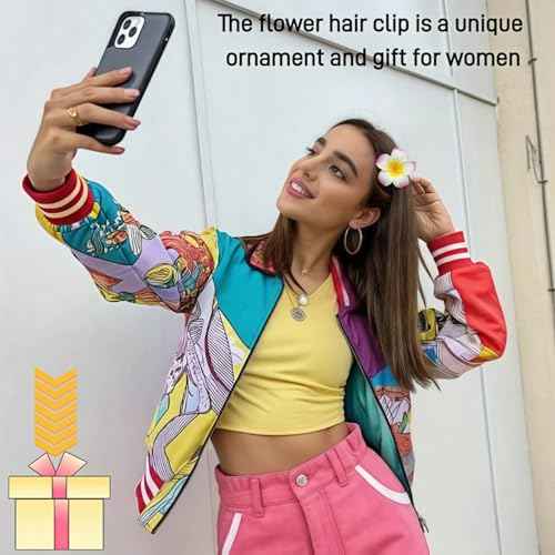 4 Pcs 7cm Hawaiian Frangipani Plumeria Foam Hair Clips, Head Flower Party Beach Hair Clips - White and Pink