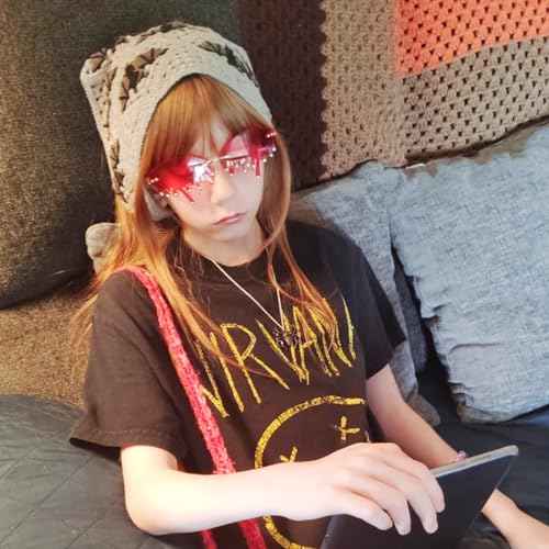 Gothic Crochet Headbands Bat Pattern Bandana for Women, Cotton Knit Triangle Headband Greyscale Halloween Style Head Scarf Christmas Vintage Crochet Hair Styling Decor