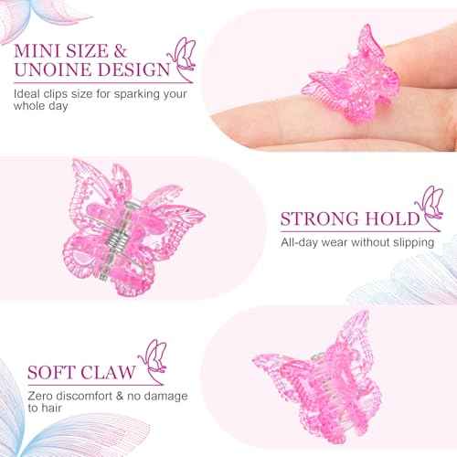 Sparkly Mini Butterfly Clips£¬BEBEEPOO Glitter Mini Butterfly Hair Claw Clips,Colorful Hair Accessories for Girls and Women - 90s Y2K Cute, Small, Tiny Clip in 10 Assorted Colors, Set of 50 (Glitter)
