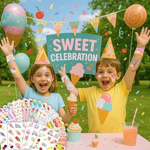 72 PCS Ice Cream Party Set - 48 Temporary Tattoos & 24 Slap Bracelets - Perfect for Themed Parties, Baby Showers, Classroom Rewards & Gifts for Kids