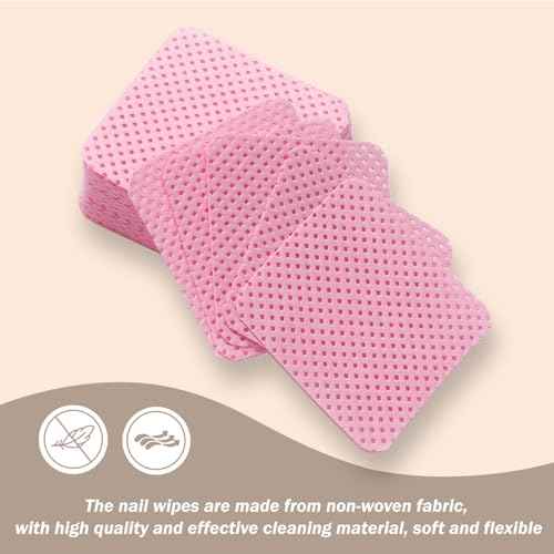 KINGMAS 600Pcs Lint Free Nail Wipes, Non-Woven Fabric Nail Polish Remover Cleaning Pads Lash Extensions Glue Cleaning Wipes Salon Supplies (Pink, Blue, Purple)