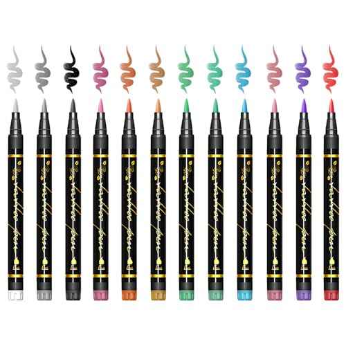 Temporary Tattoo Markers for Skin, 12 Metal Body Markers + 169 Large Tattoo Stencils for Kids Adults, Flexible Brush Tip, Bright Colors, Cosmetic-Grade Tattoo Ink, DIY Body Art Painting for Women Men