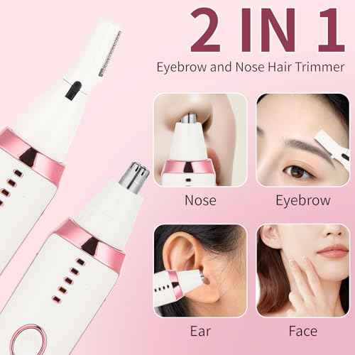 LED Display Ear and Nose Hair Trimmer Clipper for Women Men,2025 Rechargeable 2 in 1 Painless Eyebrow & Facial Hair Trimmer with Powerful Motor and Dual-Edge Blades Easy Cleansing (White)