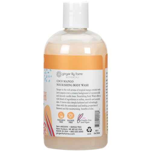 Ginger Lily Farms Botanicals Nourishing Body Wash, Coco Mango, 100% Vegan & Cruelty-Free, Coconut Mango Scent, 12 Fl Oz
