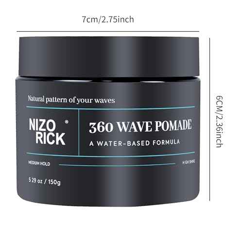 Men's 360 Wave Pomade, Water-Based ? Wave Styling Grease for Hair ? Non-Greasy, Strong Hold & Layered Waves, 150g/5.29oz