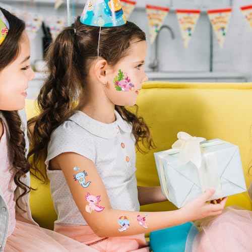 Pink Cute Axolotl Temporary Tattoos - 8 Sheets 200 Pcs Axolotls Birthday Party Decorations Supplies Kawaii Reptile Animals Salamander Tattoo Stickers for Girls Kids School Rewards Gifts