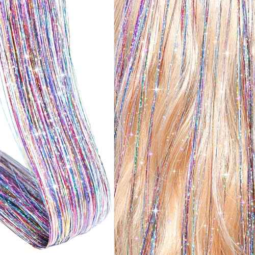 Hair Tinsel, Hair Tinsel Kit for Girls 1800 Strands Fairy Tinsel Hair Extensions Holographic Hair Tinsel Heat Resistant Colored Hair Glitter Christmas Party Festival (7 Colors)