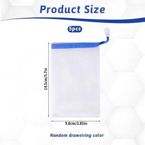 Mozeat Lens 5 PCS Soap Bags Handmade Soap Bubble Mesh Bags Exfoliating Soaps Saver Pouch Net Bag with Drawstring Body Facial Cleaning Tool for Bath & Shower (Assorted Colors)